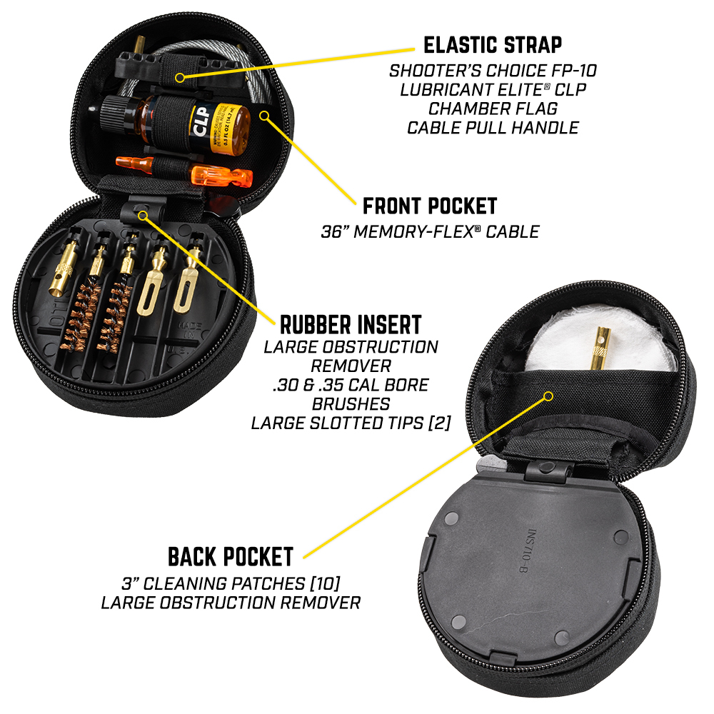 Instructions 1. Apply Otis Bio CLP to bore with a patch. Let soak for 5 minutes. 2. Run a bore brush to loosen up broken-down fouling. 3. Use a dry patch to remove fouling and excess cleaner. 4. Repeat steps 1-3 as necessary until clean. Be sure to unload firearm. Refer to your firearm manual for proper maintenance of your firearm.