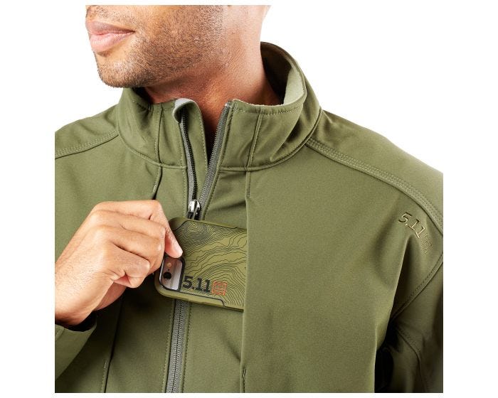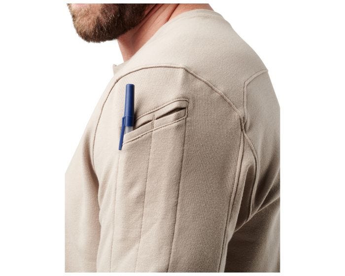 სახელოები, საყელო, აპლიკაციები იდაყვებზე და ჯიბეები წარმოადგენს 65 % პოლიესთერისა და 35 % ბამბის TDU® რიპსტოპის ქსოვილს, რომელიც ტეფლონითაა დამუშავებული (6.14 oz)