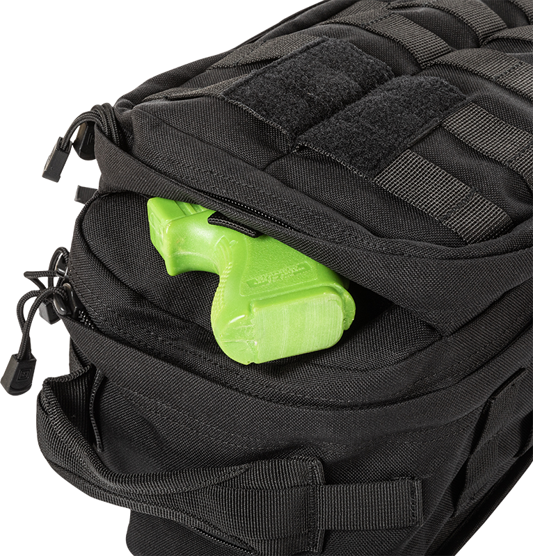 • RUSH® Back-Up Belt System™ compatible compartment with break-away hook and loop (Sold Separately)