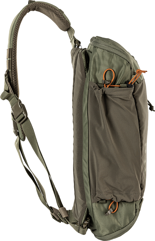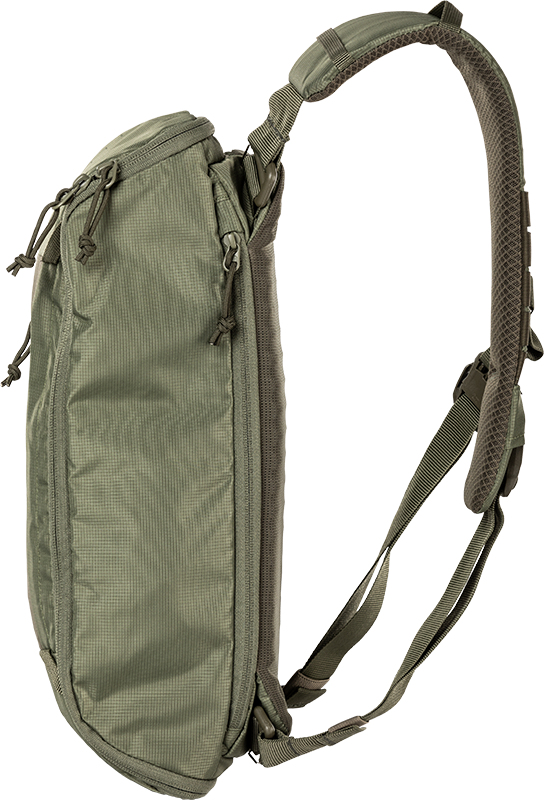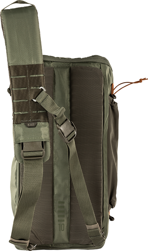 • Ambidextrous, removable single shoulder strap with quick release buckle, laser-cut MOLLE, sternum strap, and crossbody strap