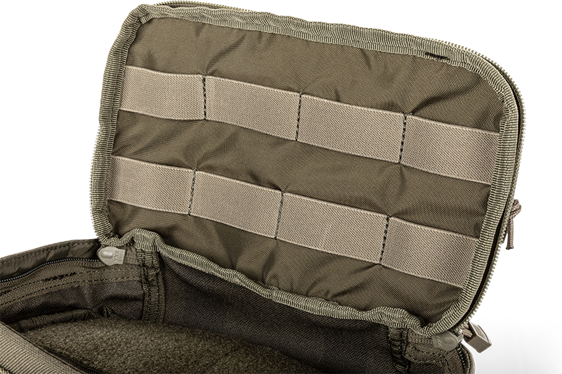 • მთავარი განყოფილება ელვა შესაკრავით, შიდა Tactec® მარყუჟის პანელით და ტრიგერის დამცავი მარყუჟებით