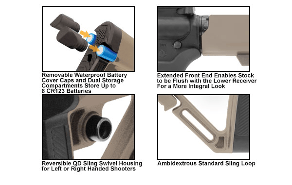 ინახავს 8 CR123 ელემტამდე ან სხვა აუცილებელ აქსესუარებს
