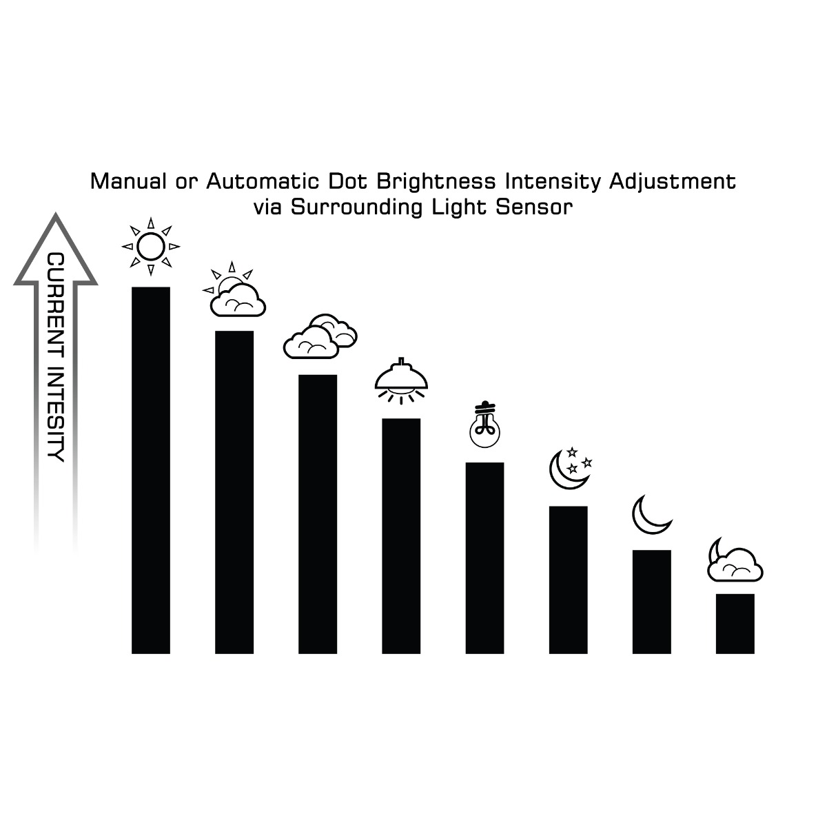 8 სიკაშკაშის დონე, რეგულირდება მანუალურად ან ავტომატურად