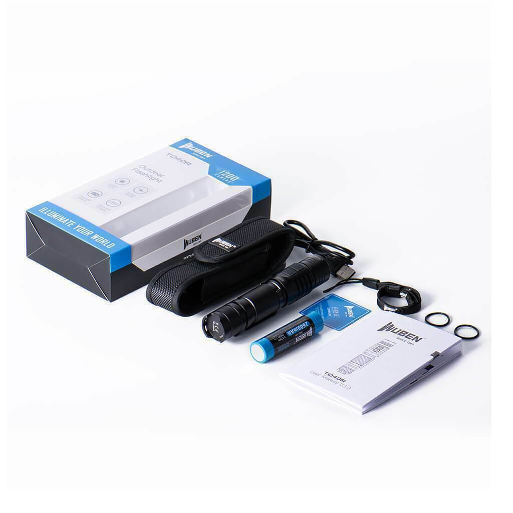 TO40R is a multi-functional flashlight for outdoor activities. Utilized 1 x CREE XP-L2 LED, it emits 1200 lumens max output. l pcs 18650 Li-ion battery power source and built-in Micro-USB charging design, make it more convenient to use.
